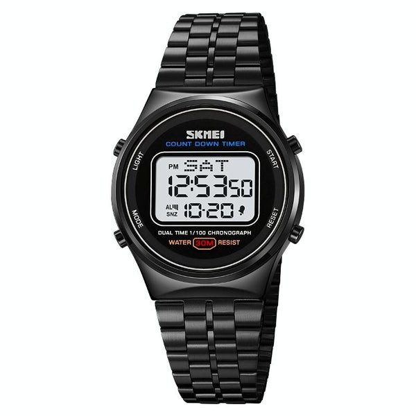SKMEI 1882 Multifunctional Men 30M Waterproof Luminous Stainless Steel Digital Wrist Watch(Black White)