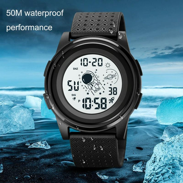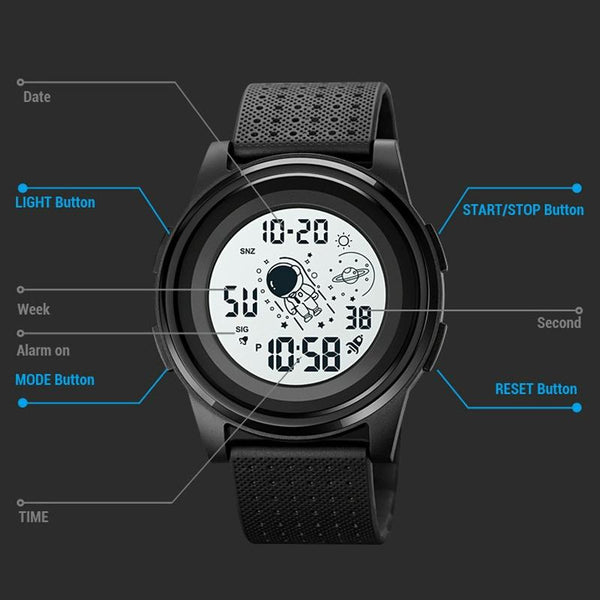 SKMEI 1883 Ultra-Thin Case Sports Multi-Function Watch Astronaut Watch(Black White Machine)