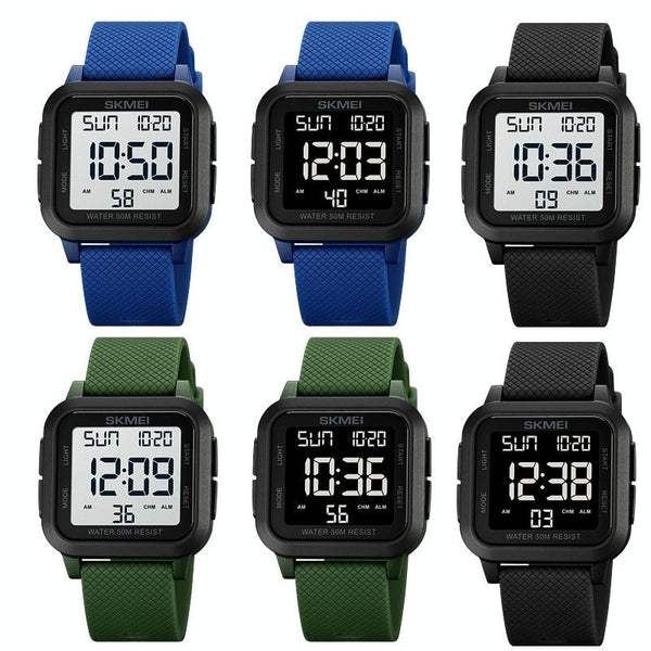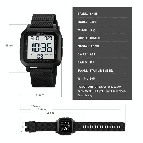 SKMEI 1894 Square Sports Waterproof Student Simple Multifunctional Luminous Watch(Black Black Machine)