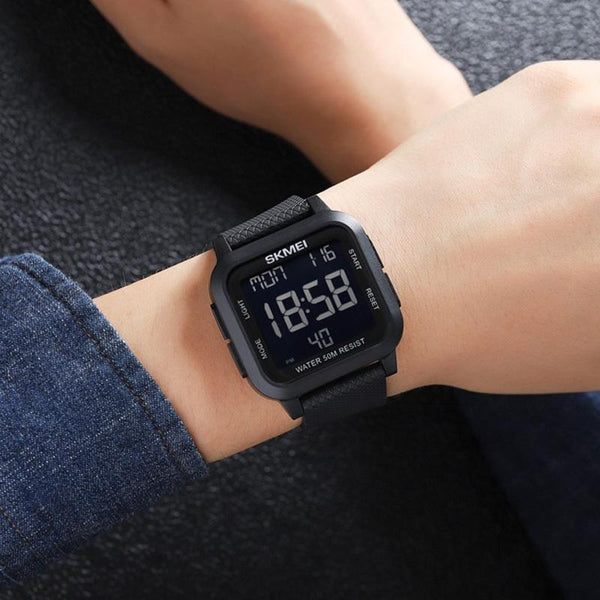 SKMEI 1894 Square Sports Waterproof Student Simple Multifunctional Luminous Watch(Black White Machine)