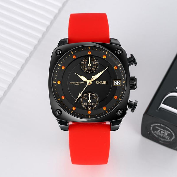 SKMEI 1903 Stainless Steel Buckle Silicone Strap Waterproof Quartz Watch(Red)