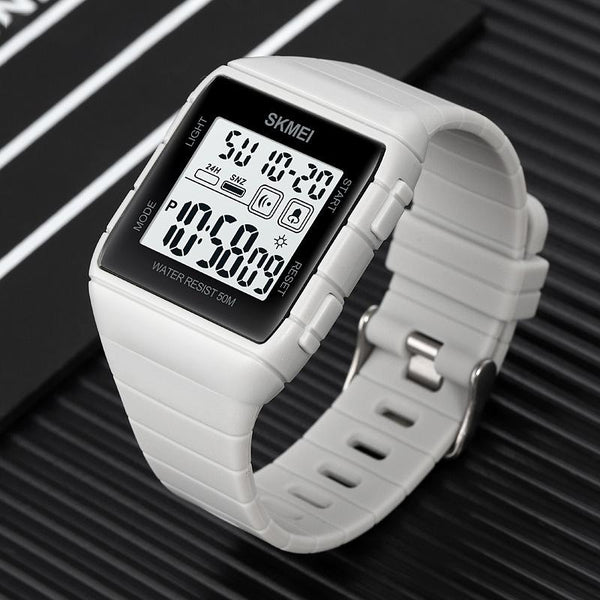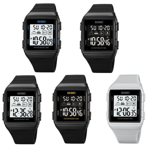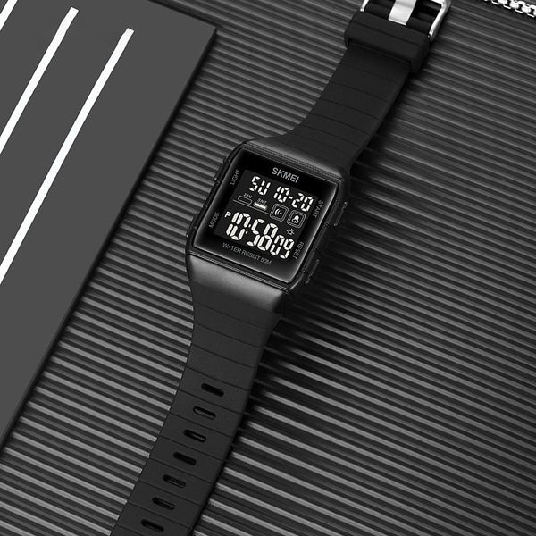 SKMEI 1960 Stainless Steel Buckle Silicone Strap Waterproof Electronic Watch(Black and Black Machine)