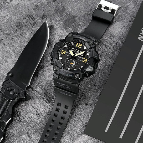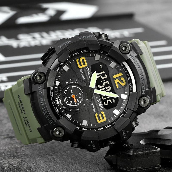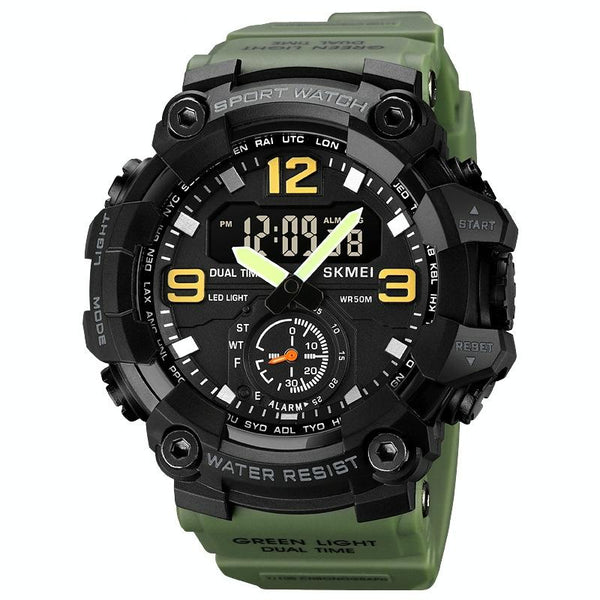 SKMEI 1965 Stainless Steel Buckle PU Strap Waterproof Electronic Watch(Army Green)