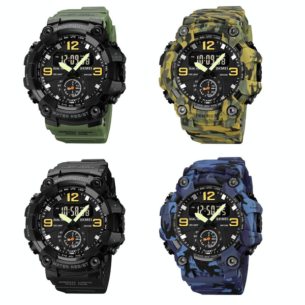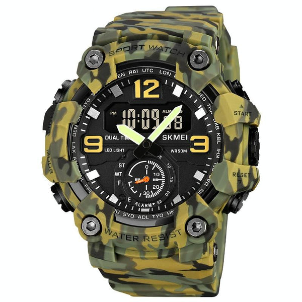 SKMEI 1965 Stainless Steel Buckle PU Strap Waterproof Electronic Watch(Army Green Camouflage)