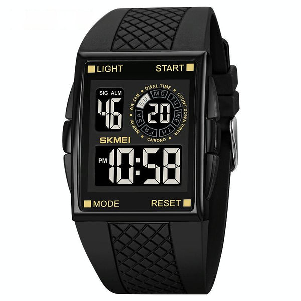 SKMEI 1967 Stainless Steel Buckle PU Strap Waterproof Electronic Watch(Black Gold)