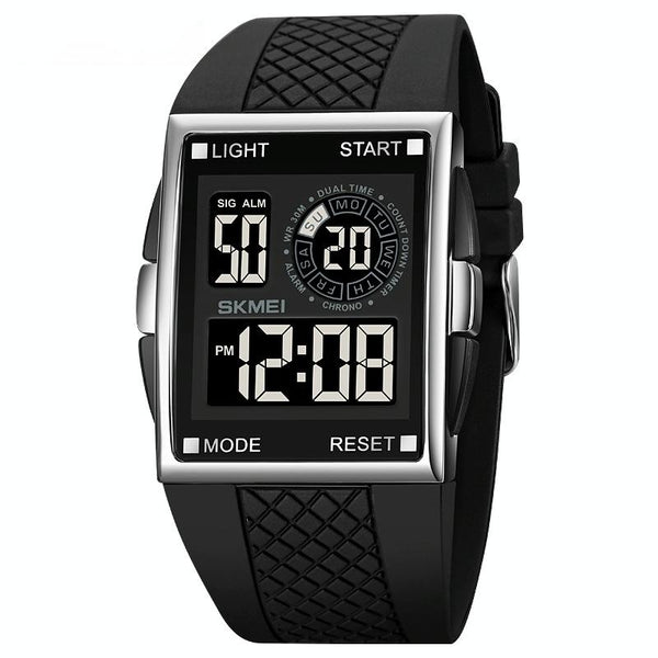 SKMEI 1967 Stainless Steel Buckle PU Strap Waterproof Electronic Watch(Silver and Black Machine)