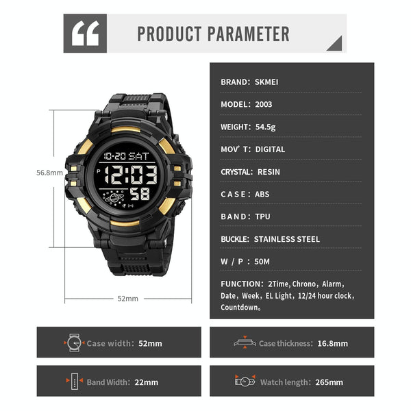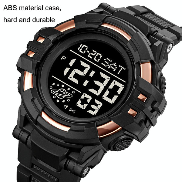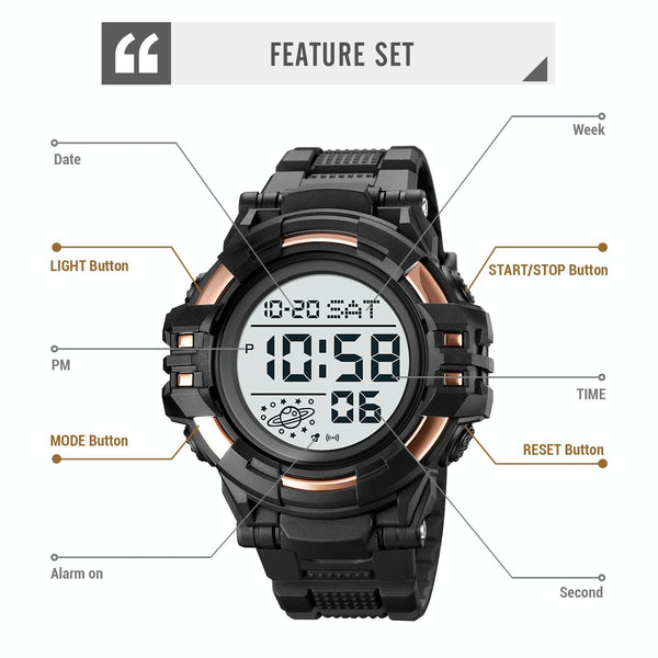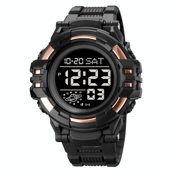 SKMEI 2003 Multifunctional Back Light Sports Watch Mens Countdown Date Alarm Clock Watch(Rose Gold Black Machine)