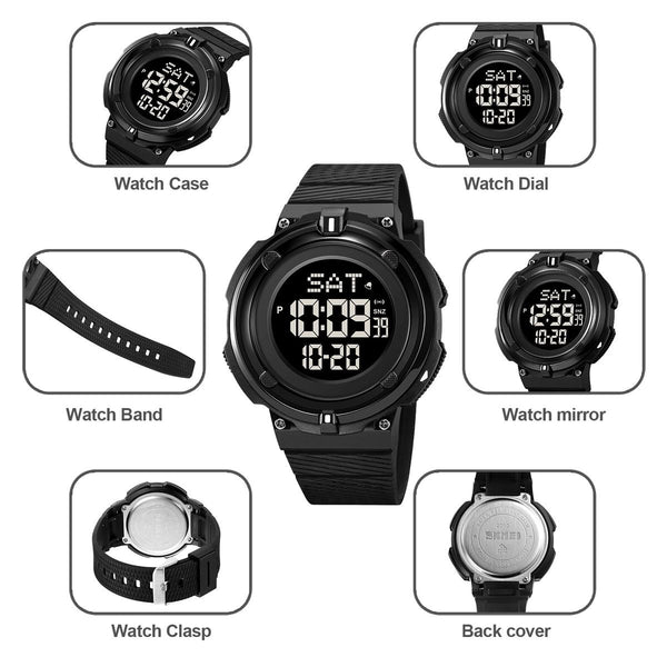 5. Functions: time, date, alarm clock, stopwatch, countdown, hourly time, 12/24 hour format, EL luminous