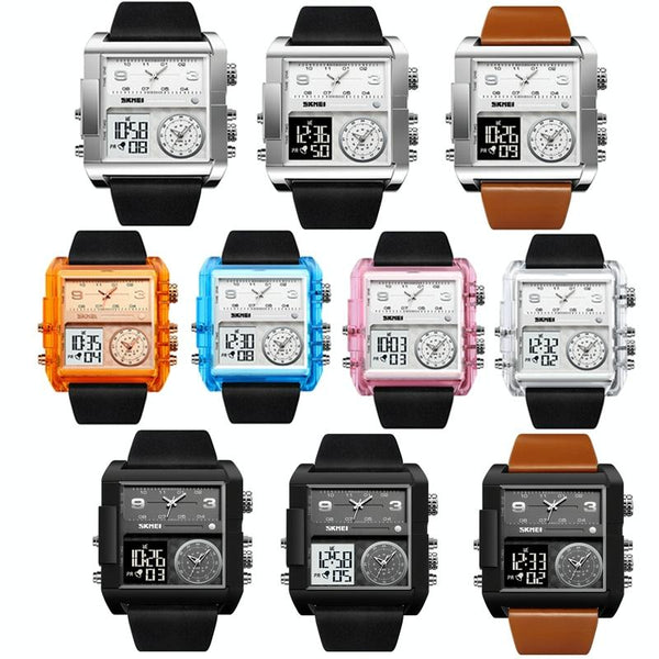 SKMEI 2020 Square Large Dial Triple Movement Men Sports Watch(Silver Shell Black Belt White Machine)