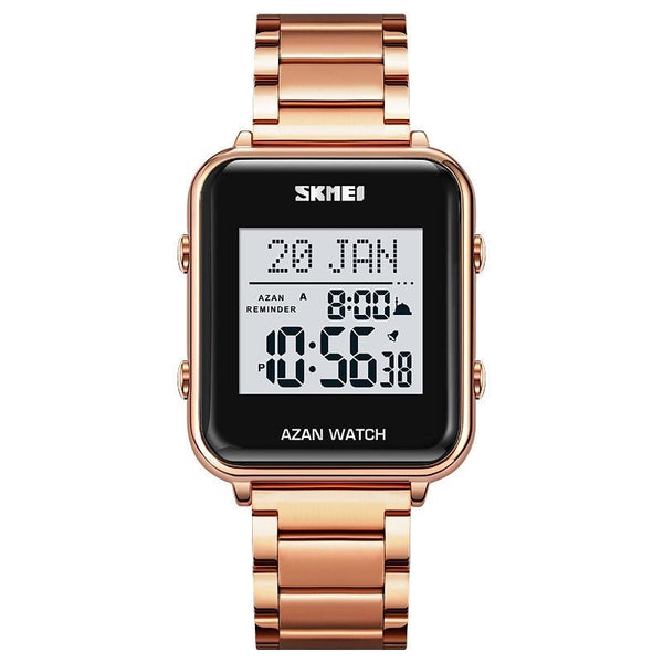 SKMEI 2064 Multifunctional Muslim Worships Compass Luminous Digital Wrist Watch(Rose Gold+White)