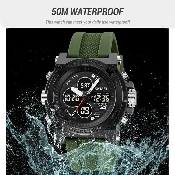 SKMEI 2065 50M Waterproof Multifunctional Men Dual Display Sports Digital Wrist Watch(Black White)