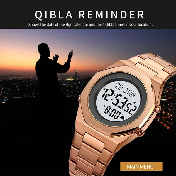 SKMEI 2069 Multifunctional 30M Waterproof Muslim Worships Digital Wrist Watch(Rose Gold+White)