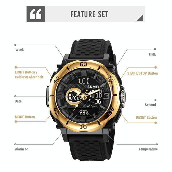 SKMEI 2098 Multifunctional Men 50M Waterproof Thermometer Dual Display Digital Wrist Watch(Black)