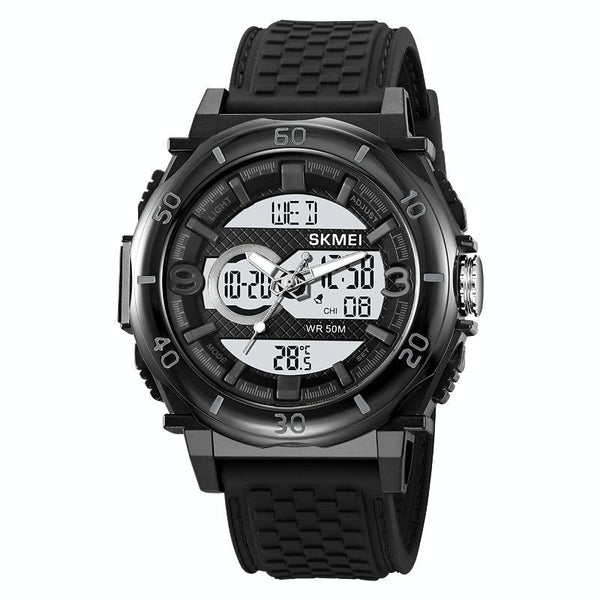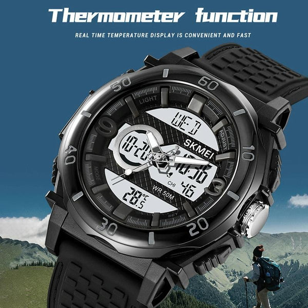 SKMEI 2098 Multifunctional Men 50M Waterproof Thermometer Dual Display Digital Wrist Watch(Black+White)