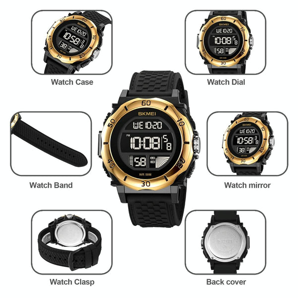 SKMEI 2099 Multifunctional Men Outdoor 50M Waterproof Luminous Digital Wrist Watch(Black+White)