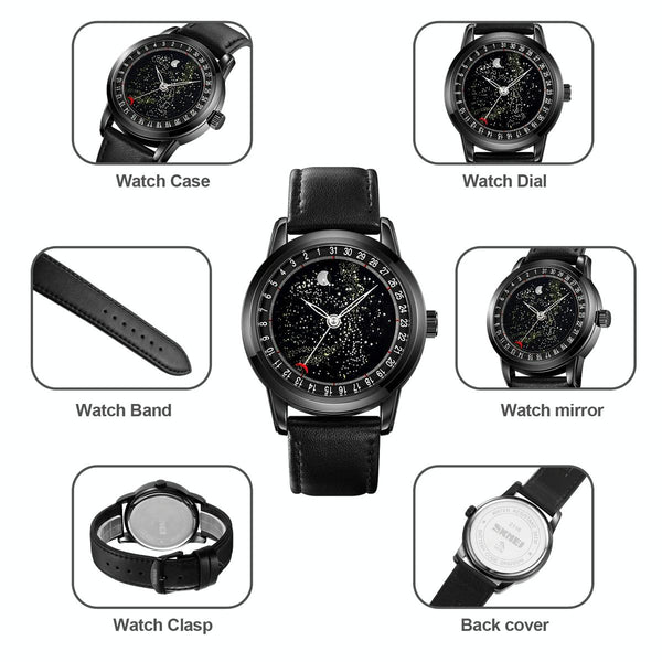 SKMEI 2116 Multifunctional Men 30M Waterproof Fashion Casual Quartz Watch(Black Leather)