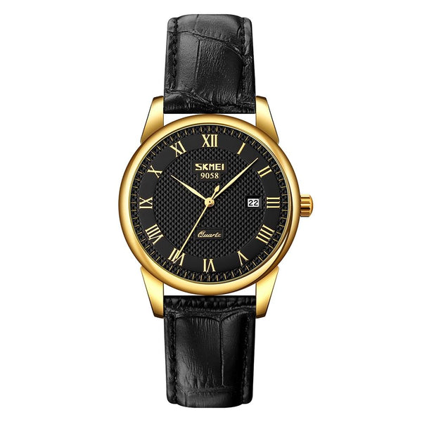 SKMEI 9058 Multifunctional Outdoor Fashion Waterproof Gold Shell Quartz Wrist Watch(Women Style Black Face Black Strap)