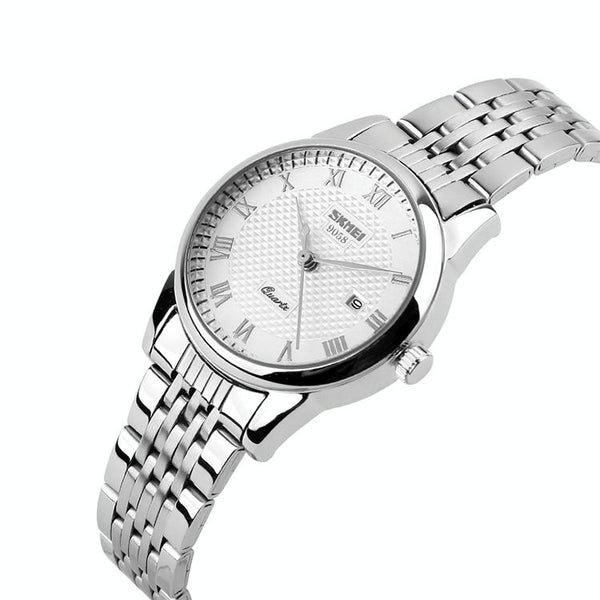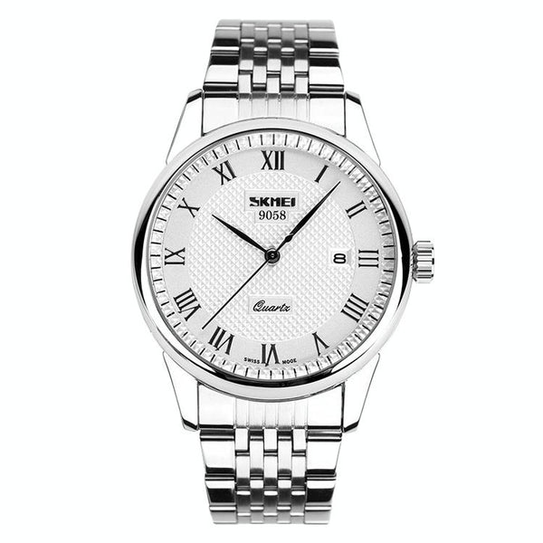 SKMEI 9058 Multifunctional Outdoor Fashion Waterproof Steel Strip Quartz Wrist Watch(Men Style White)