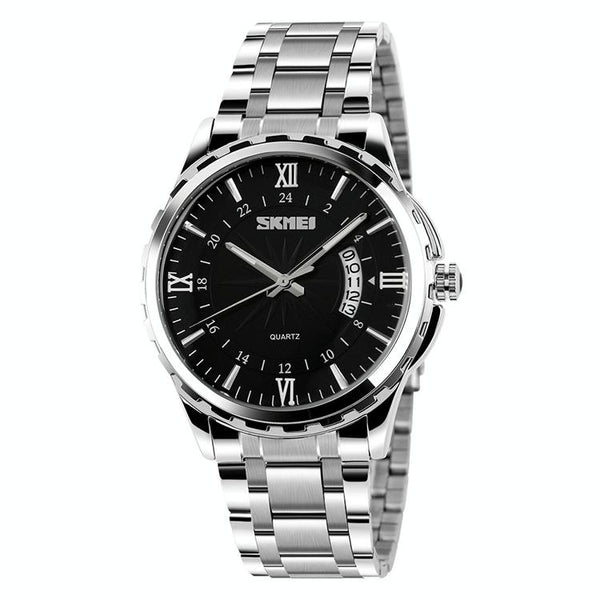 SKMEI 9069 Multifunctional Outdoor Fashion Business Waterproof Silver Shell Quartz Wrist Watch(Black)