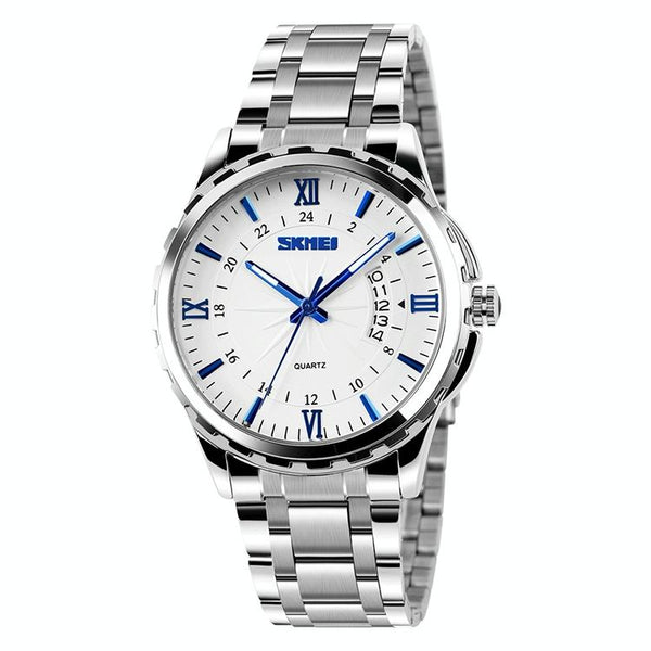 SKMEI 9069 Multifunctional Outdoor Fashion Business Waterproof Silver Shell Quartz Wrist Watch(Blue)