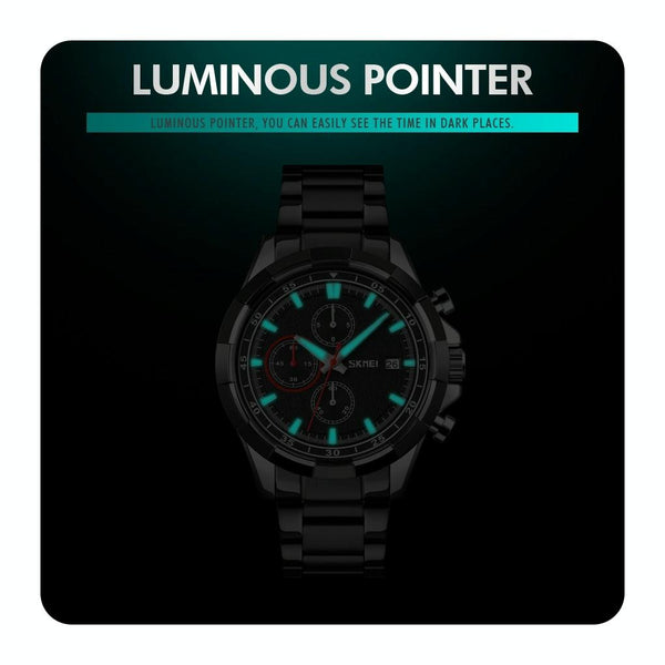 SKMEI 9192 Men Calendar Timing Stainless Steel Belt Luminous Quartz Watch(Rose Gold Black)