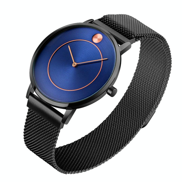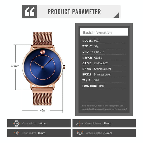 SKMEI 9197 Simple Non-scale Dial Metal Mesh Belt Quartz Watch for Ladies(Black Shell Blue Surface)