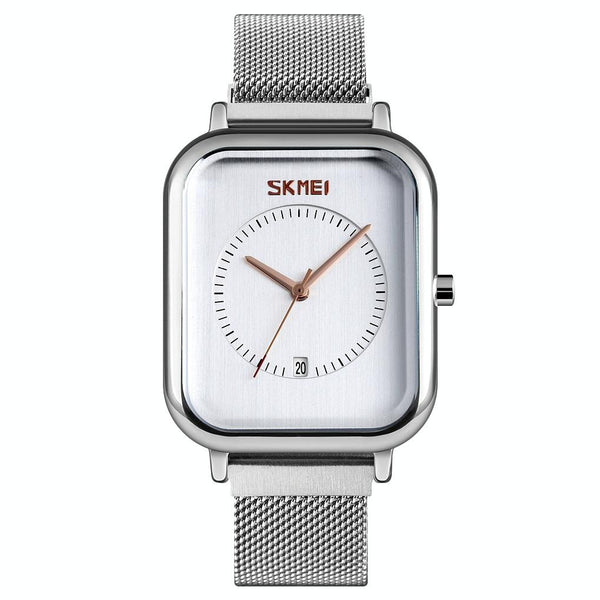 SKMEI 9207 Fashion Creative Simple Watch Men Magnetic Buckle Mesh Belt Steel Belt Couple Quartz Watch(Silver White)