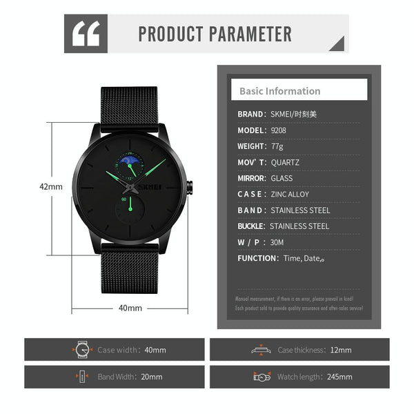 Skmei 9208 Men Quartz Watch Casual Simple Business Sports Watch for Men(Rose Gold)