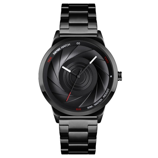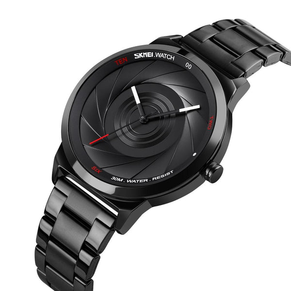 Skmei 9210 Fashion Trend Mens Business Wristwatch Simple Three-Dimensional Surface Waterproof Gold Quartz Watch Man(Black)