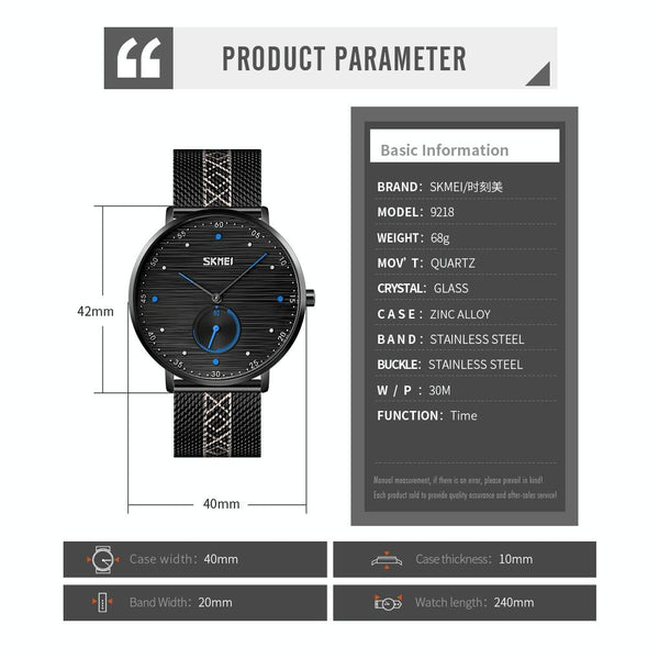 SKMEI 9218 Men Horizontal Striped Arabic Numeral Dial Mesh Belt Quartz Watch(Black)