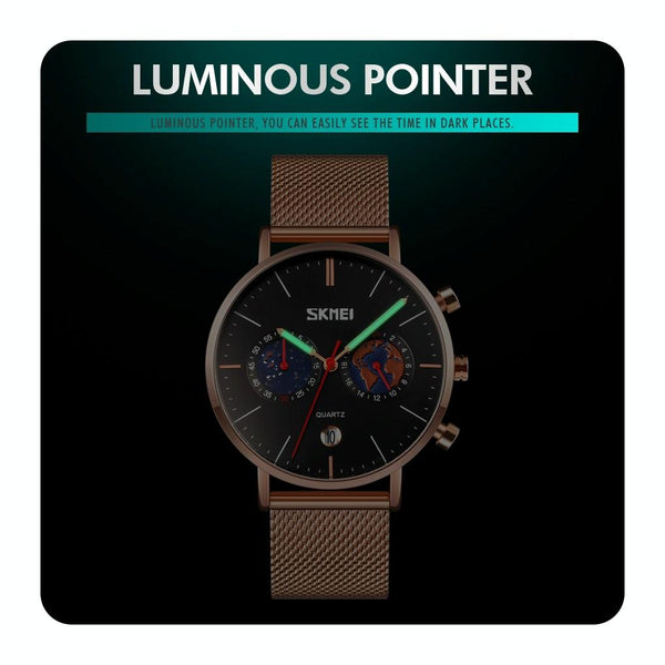 SKMEI 9231 Men Map Pattern Calendar Stopwatch Stainless Steel Strap Quartz Watch(Blue)