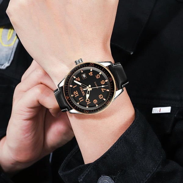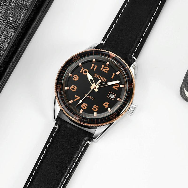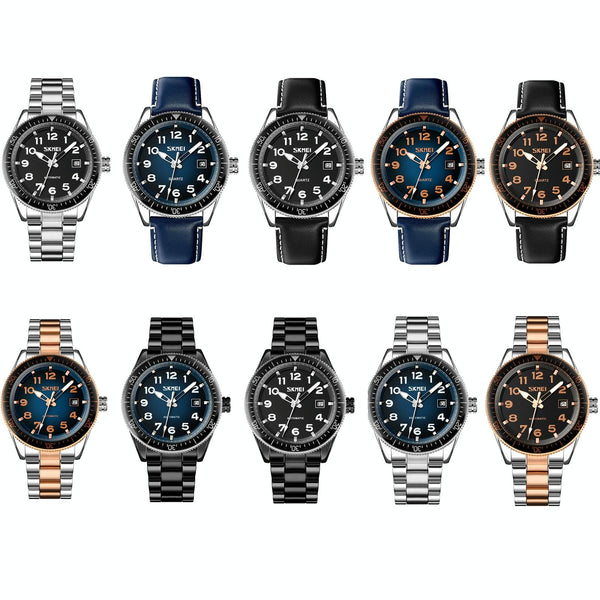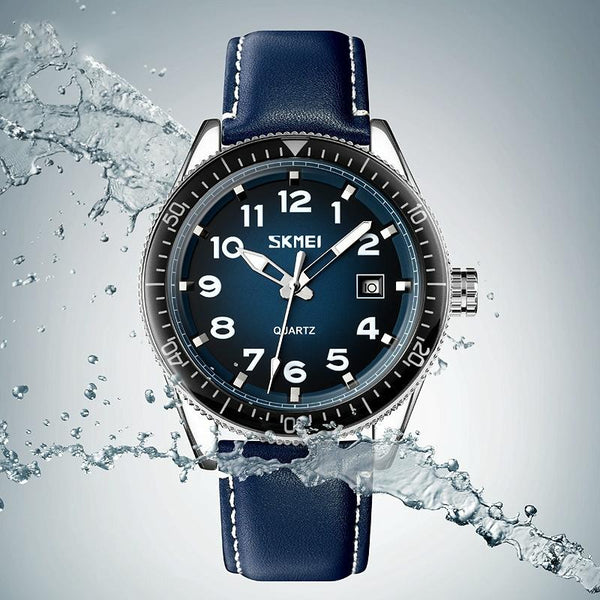 SKMEI 9232 Stainless Steel Buckle Glass Mirror Waterproof Resistant Quartz Watch(Belt - Rose Gold and Blue)