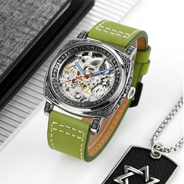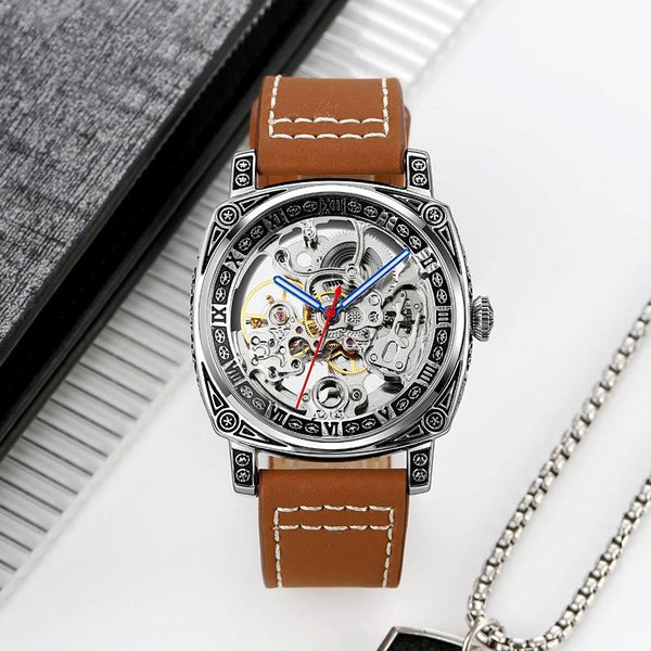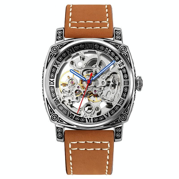 SKMEI 9271 Stainless Steel Buckle Leather Strap Waterproof Mechanical Watch(Brown)