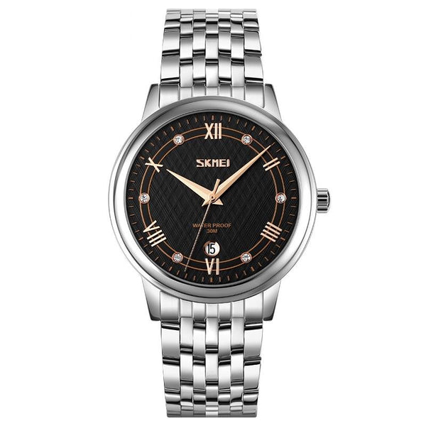 SKMEI 9272 Stainless Steel Buckle Strap Waterproof Quartz Watch Man(Silver Shell Black Surface)
