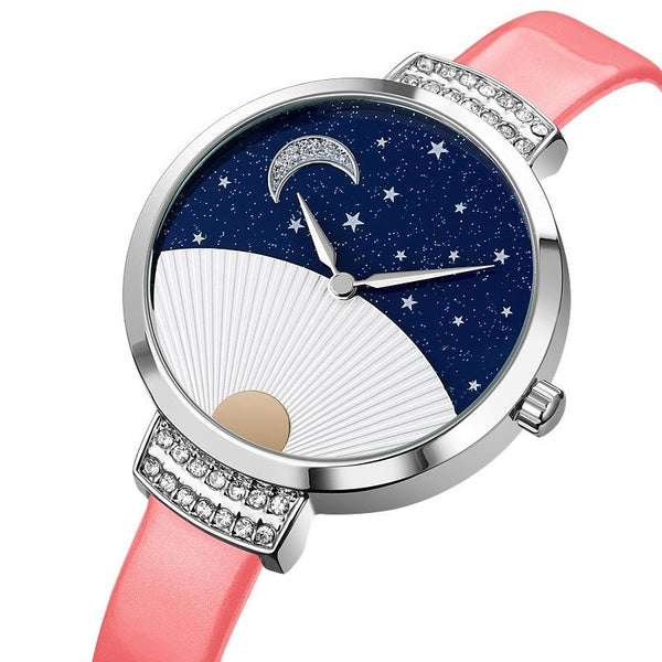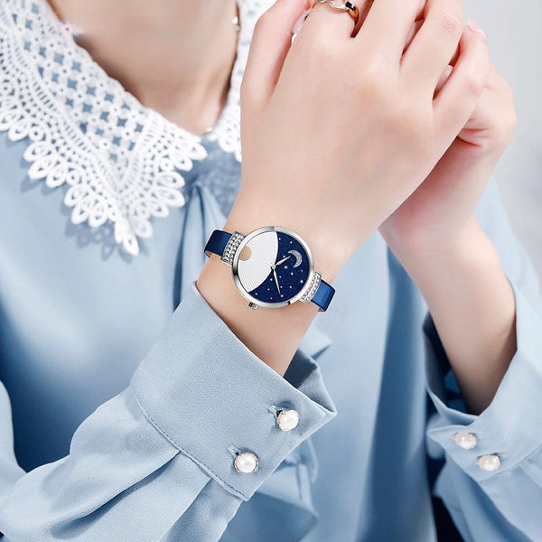SKMEI 9279 Stainless Steel Buckle Genuine Leather Strap Waterproof Quartz Watch(Blue)