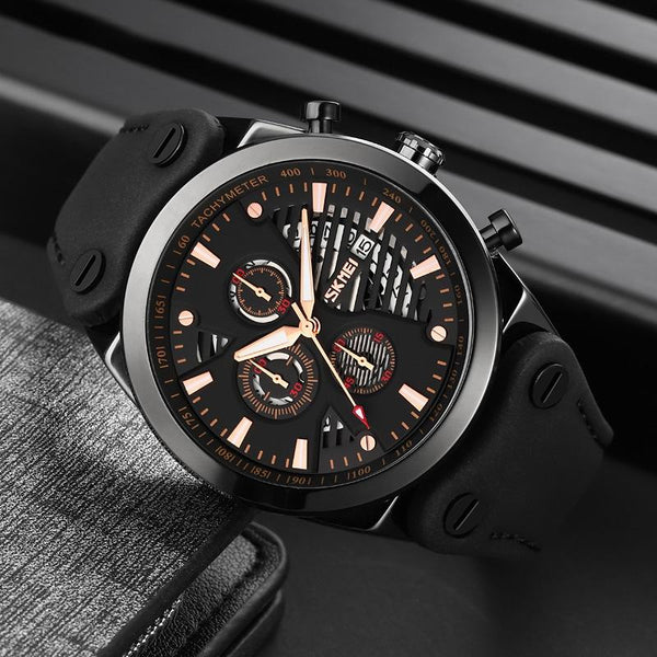 SKMEI 9282 Stainless Steel Buckle Leather Strap Waterproof Quartz Watch(Brown Belt Brown Surface)