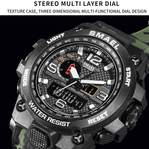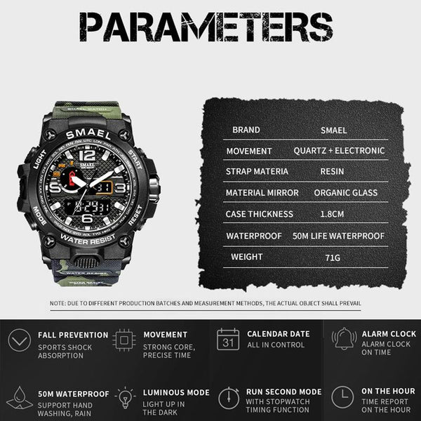 SMAEL 1545D Time Men Anti-falling Night Light Alarm Waterproof Sports Watch(Camouflage Army Green)