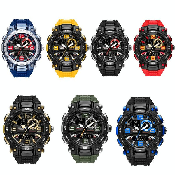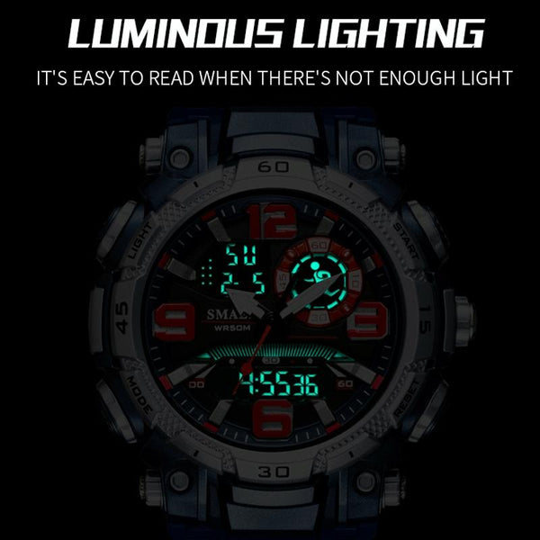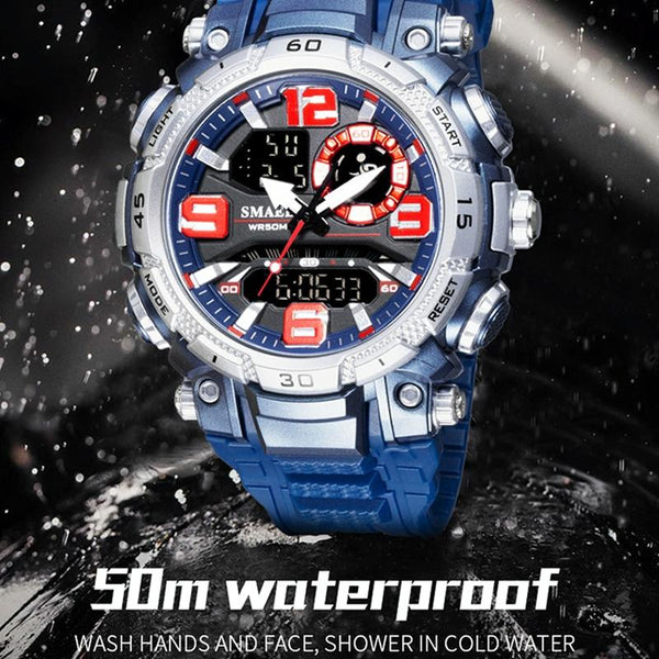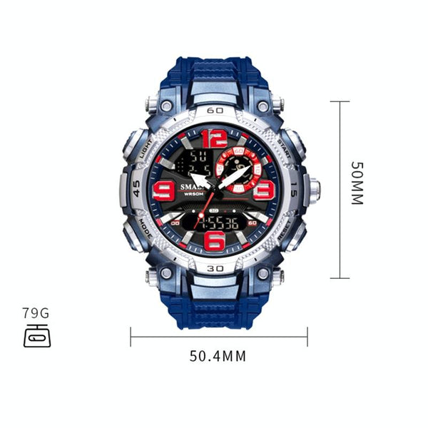 SMAEL 1921 Men Dual Movement Sports Watch Multifunctional Time Night Light Alarm Student Wrist Watch(Deep Blue)