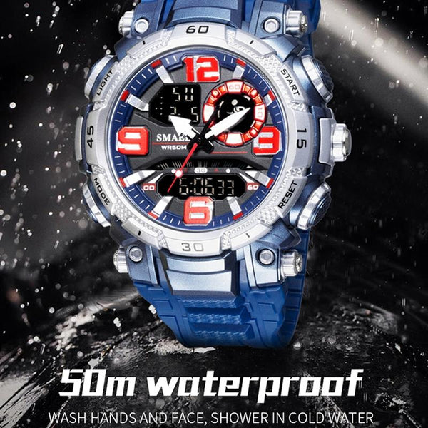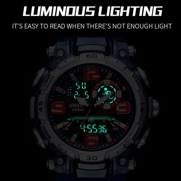 SMAEL 1921 Men Dual Movement Sports Watch Multifunctional Time Night Light Alarm Student Wrist Watch(Red)