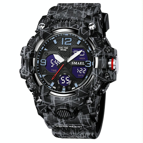 SMAEL 8008 Outdoor Waterproof Camouflage Sports Electronic Watch Luminous Multi-function Waist Watch(Camouflage Black)