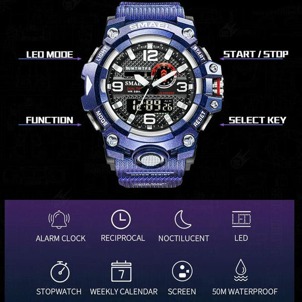 SMAEL 8035 Outdoor Sports Waterproof Dual Display Men Watch(Black)