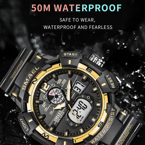 SMAEL 8045 Outdoor Waterproof Time Sports Luminous Dual Display Watch(Black Gold)