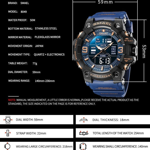 SMAEL 8049 Waterproof Sports Watch Men Multi-function Night Light Electronic Watch(Black Gold)