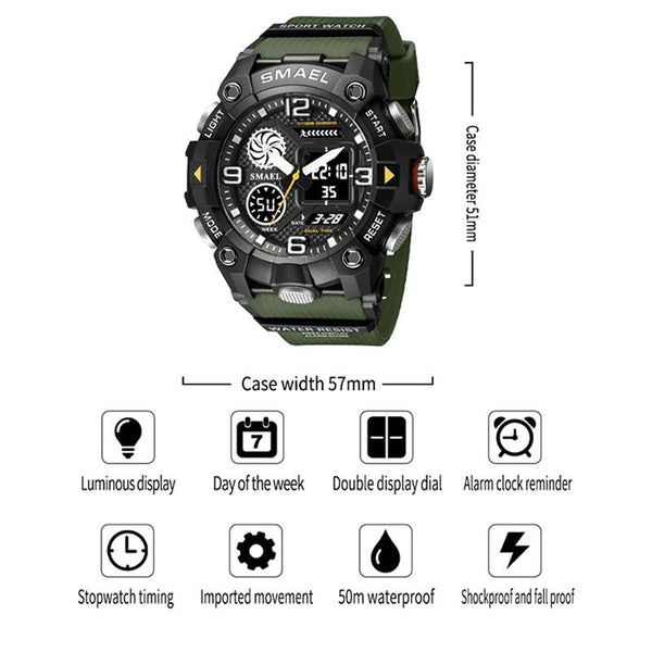 SMAEL 8055 Large Dial Sports Outdoor Waterproof Luminous Multifunctional Electronic Watch(Army Green)