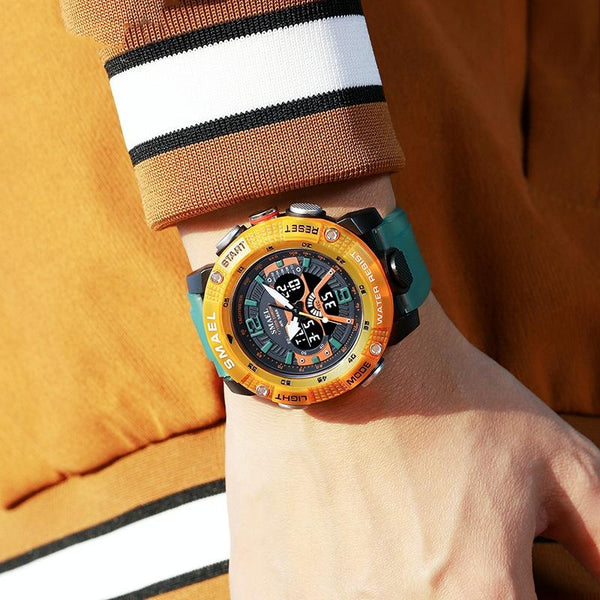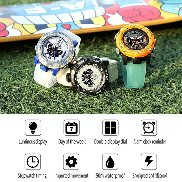 1. Function: dual display dial, luminous, chronograph stopwatch, day, calendar, alarm clock reminder, shockproof and drop resistant