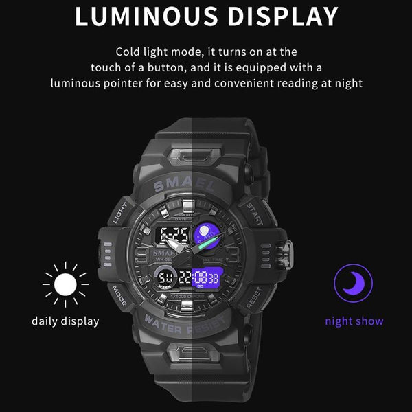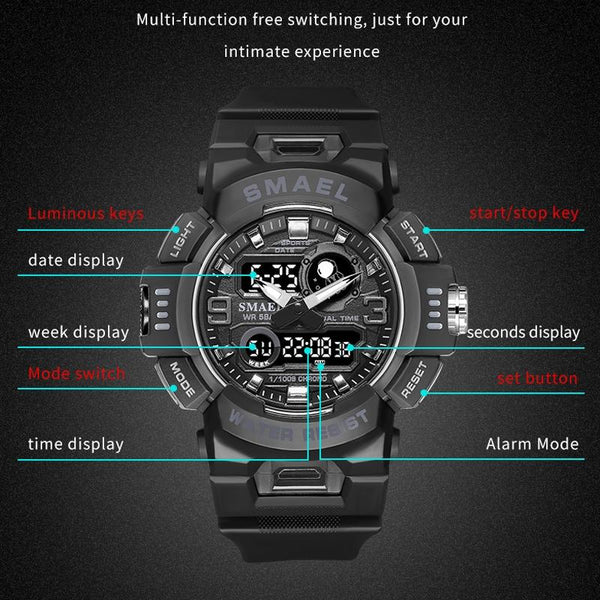 SMAEL 8063 Outdoor Electronic Alarm Sports Watch Double Showed Astronaut Student Watch(Black Gray)