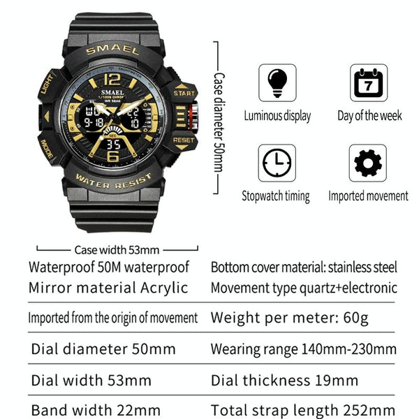 SMAEL 8065 Waterproof Sports Multifunctional Luminous Watch Men(Blue Red)