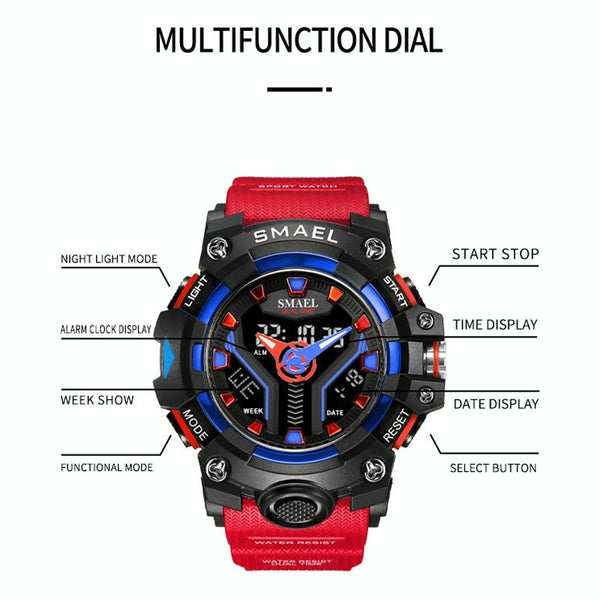 SMAEL 8075 Multi-function Waterproof Night Light Outdoor Watch(Blue)