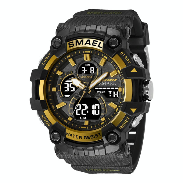 SMAEL 8079 Outdoor Multifunctional Dual Display Dial Waterproof Sports Watch(Black Gold)