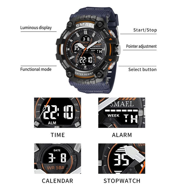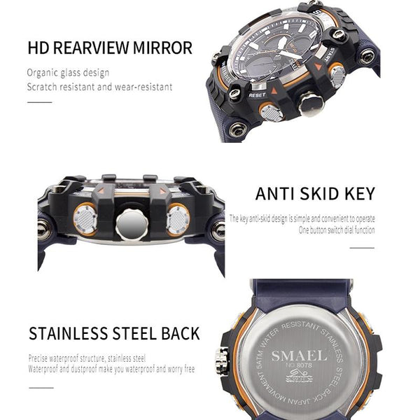 SMAEL 8079 Outdoor Multifunctional Dual Display Dial Waterproof Sports Watch(Red)